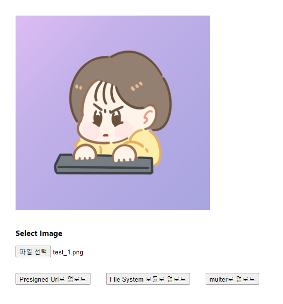 → 여기서 버튼을 누르면 각자 다른 방법으로 AWS S3에 업로드