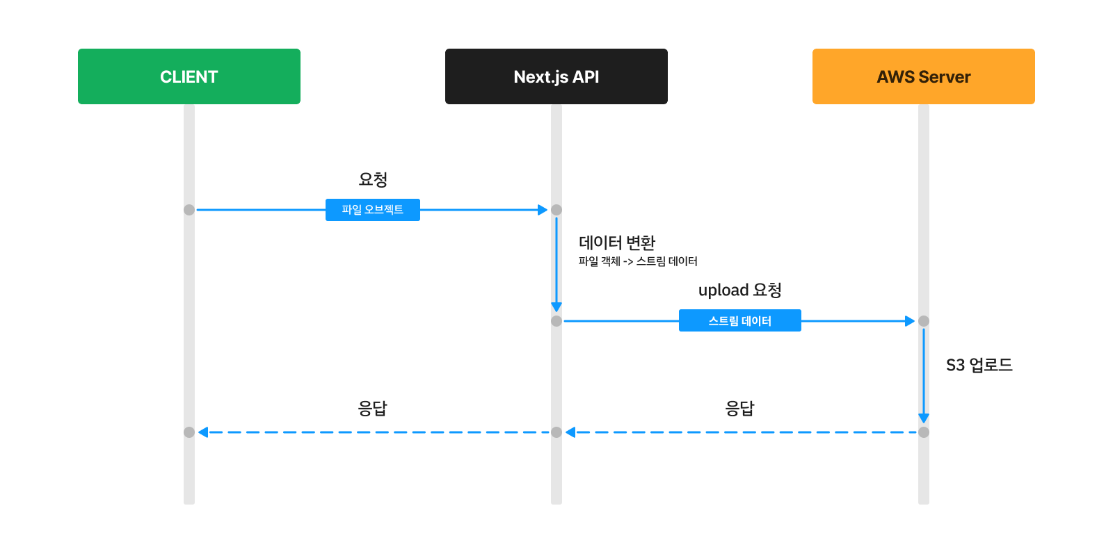 클라이언트에서 바로 s3로 업로드하는 것과 달리 여기서는 api로 file 객체를 보내고 그곳에서 s3에 업로드하는 방식으로 구현할 예정이다.