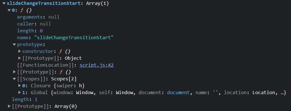 슬라이더를 생성하고 콘솔로 찍어보면 이벤트 리스너에 아래와 같이 함수들이 보일 것이다.